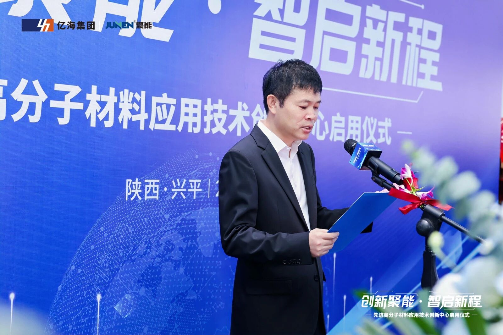 陕西亿海塑料工业集团董事长李军、陕西聚能塑胶有限公司总裁刘建等主办方领导一同参加了启用仪式。